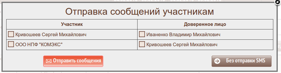 Всем отмеченным участникам дела будут отправлены сообщения. Текст сообщения можно указать в настройках сообщений пользователя.