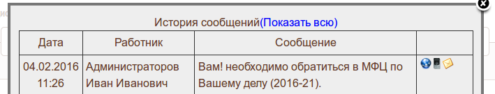 - «Сообщения по делу» - Просмотреть сообщения по данному делу;