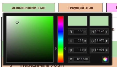 для изменения цвета щелкните мышкой по легенде соответствующего этапа