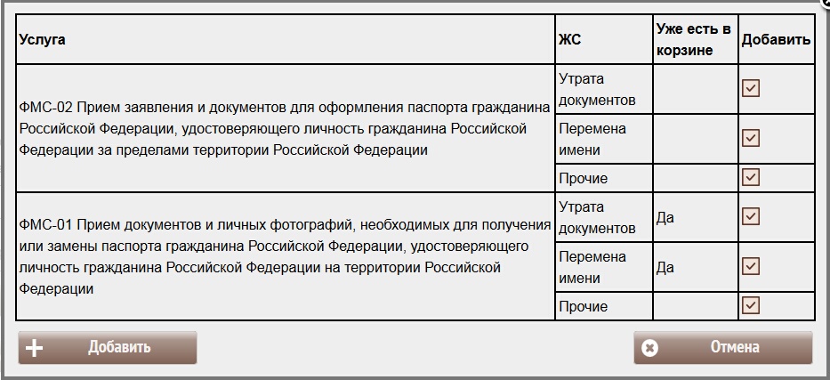 Наполнение корзины производится либо при анализе жизненной ситуации, либо произвольно, любыми услугами по желанию заявителя (