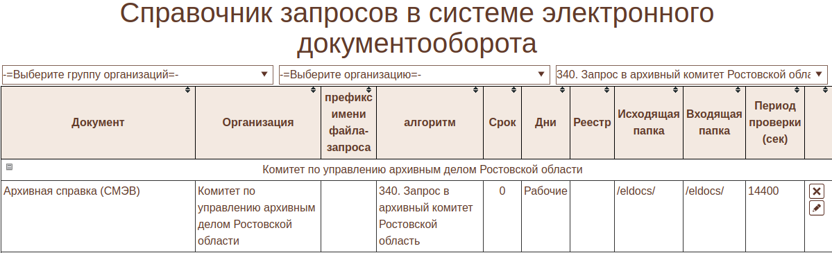- Произвести настройку запроса документа в Комитете по Управлению Архивными Делами Ростовской Области на алгоритм 340.