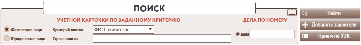 При обращении заявителя по телефону, почте или WEB, работник Call-центра вводит ФИО клиента либо название организации (для ЮР лица) в поиске по базе и выбирает его из выподающего списка, если нет данных о заявителях тогда по желанию можно добавить его в базу нажав на кнопку