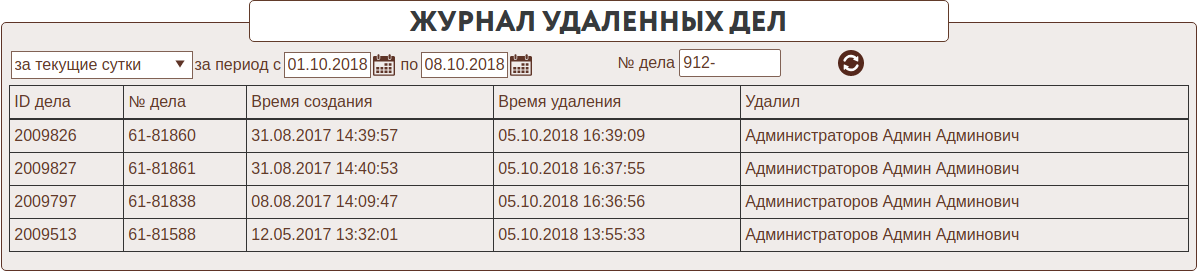 Добавлена возможность удаления дел через определенный период после выдачи.