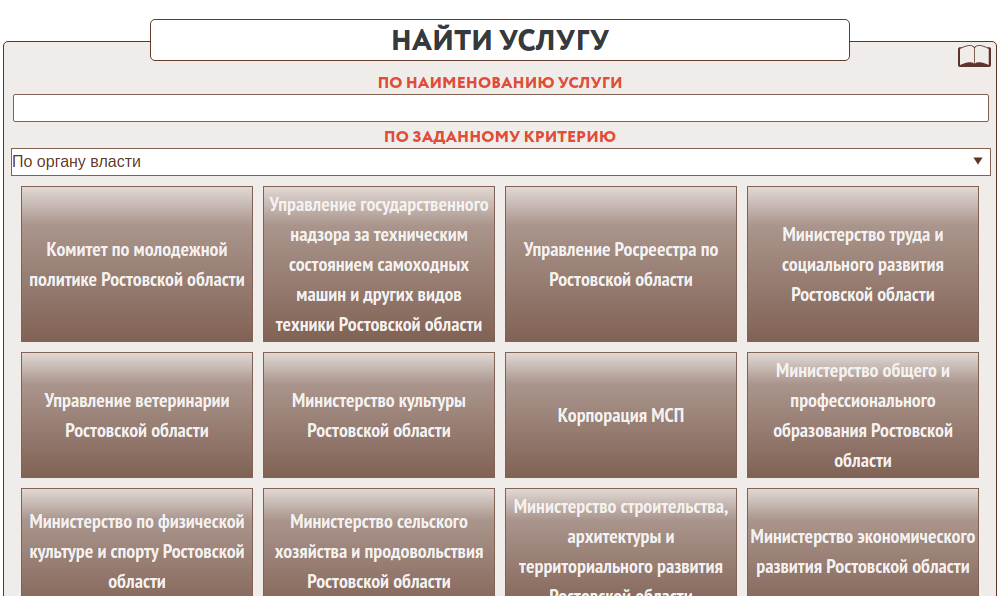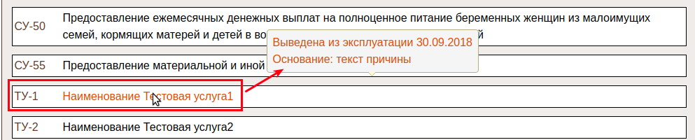 Услуги, оказание которых не разрешено ни одному подразделению МФЦ выделяются красным цветом (имеет смысл только в справочнике услуг, в остальных случаях услуга не отображается).