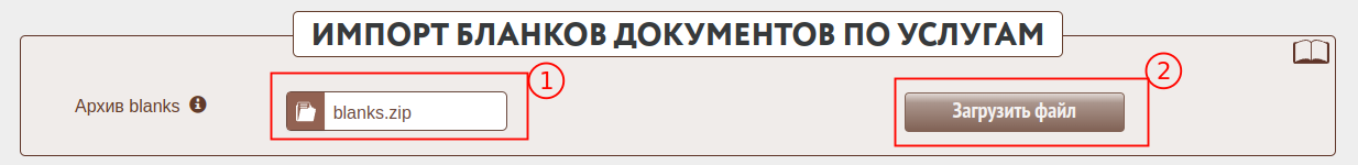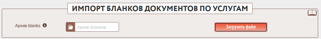 Форма предназначена для импорта бланков документов на услугах из файла-архива, имеющего указанный формат