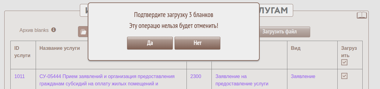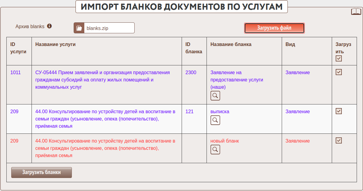 ВНИМАНИЕ! Загружаемые бланки * безвозвратно заменят* существующие в системе.
