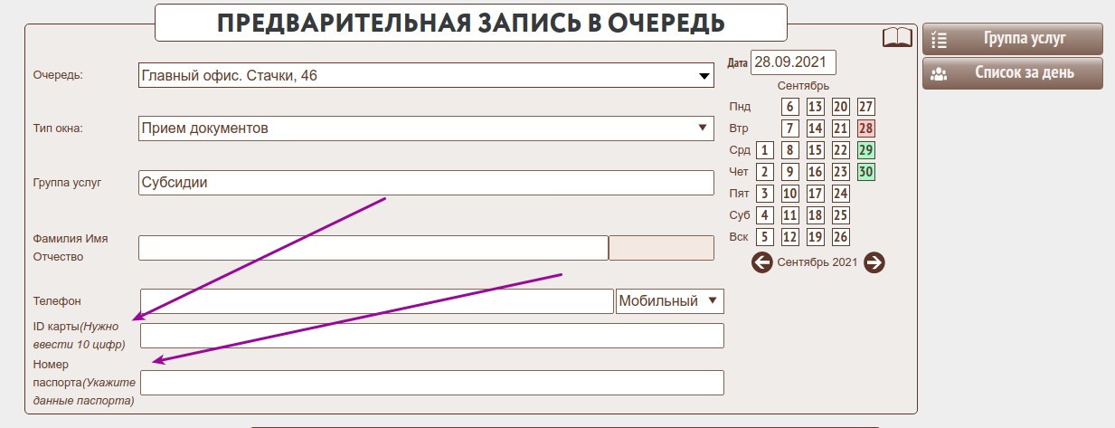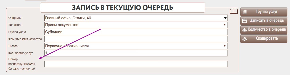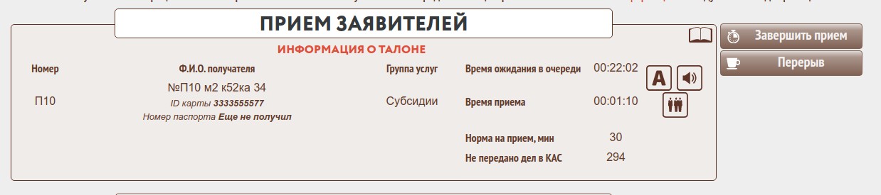 При записи в предварительную очередь с рабочего места оператора это выглядит так: