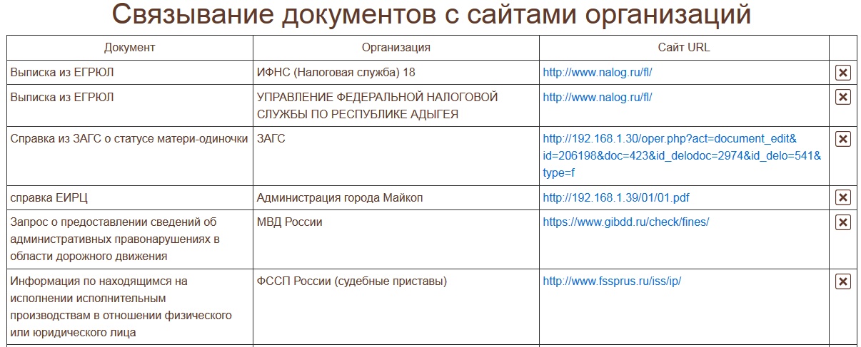 Некоторые организации не используют ЭДО, но некоторые документы можно получить, заполнив форму на их портале. В этом разделе можно настроить связку документов, организаций и адресов на порталы.