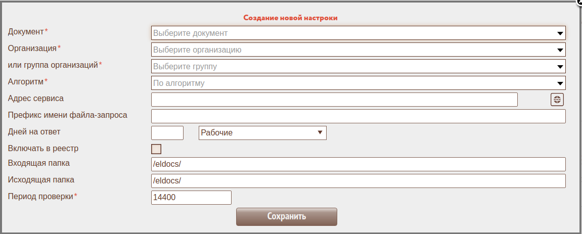 Период проверки (секунды) указывает как часто будет идти проверка каталогов входящих сообщений на наличие ответов от организаций.