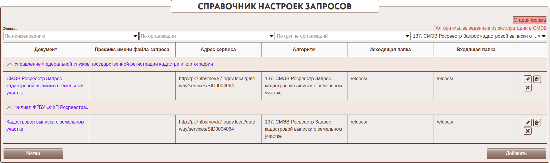 Красным цветом выделены алгоритмы, выведенные из эксплуатации в СМЭВ