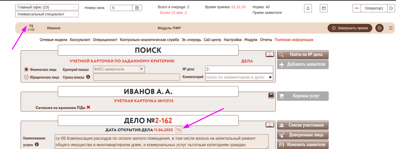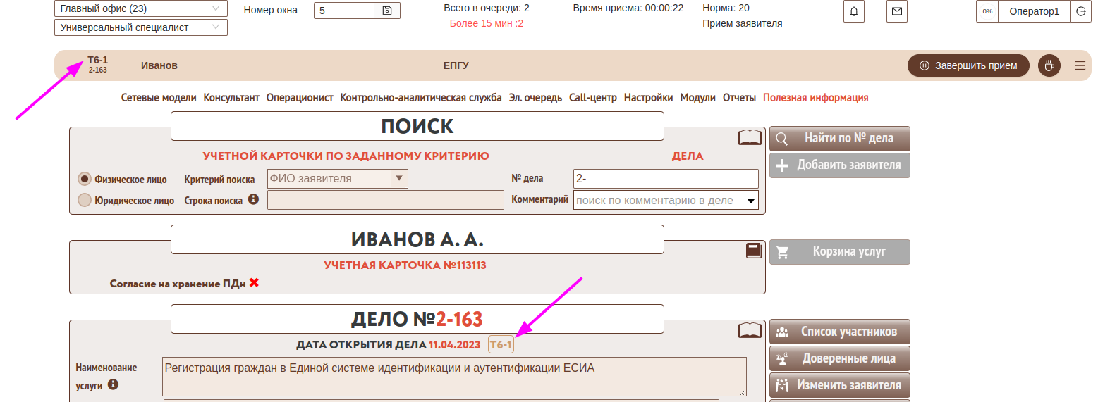 Для правильного учета времени работы с заявителем прием нескольких дел (нескольких консультаций) осуществляется следующим образом: