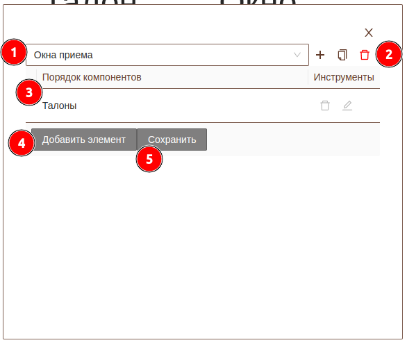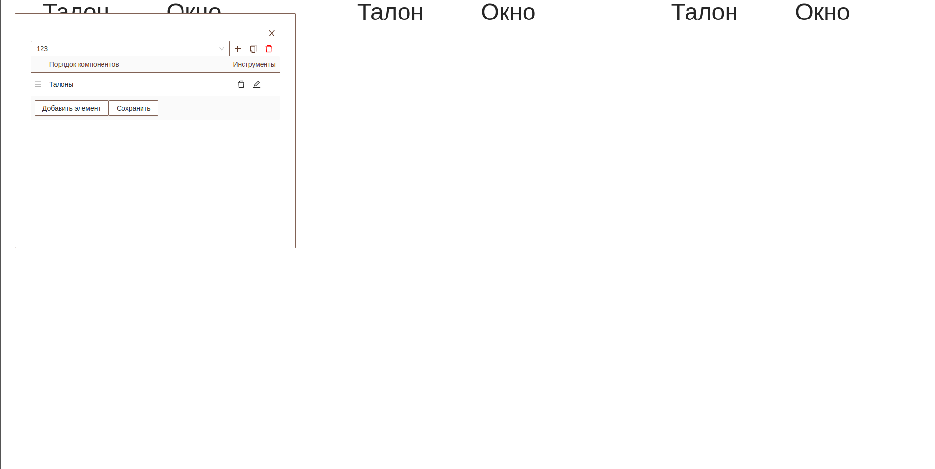 Предположим, что у нас был выбран новый шаблон Окна приема, в котором у нас установлен лишь 1 виджет (компонент) - "Талоны". Так как у нас выбран стандартный шаблон, то никаких манипуляций с его настройкой мы сделать не можем, кроме как скопировать его структуру и создать на ее основе новый шаблон, но об этом позже.
