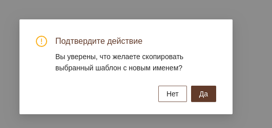 При нажатии на кнопку "Копировать выбранный шаблон" откроется окно с подтверждением действия: