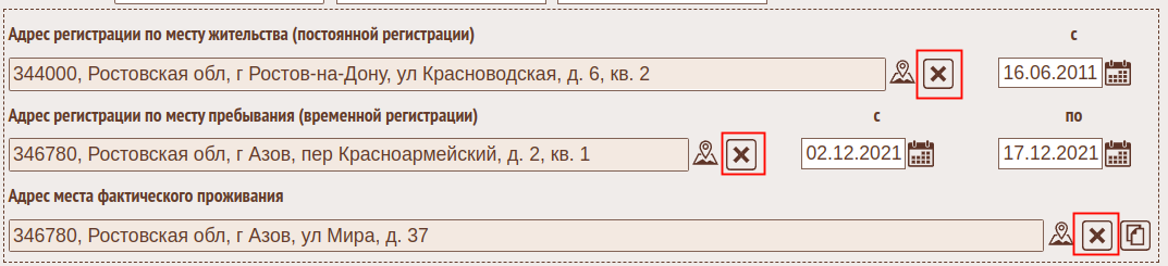 Реквизит Адрес места фактического проживания автоматически не копируется из Адрес регистрации по месту жительства (постоянной регистрации). Для его копирования из Адрес регистрации по месту жительства (постоянной регистрации) используйте кнопку