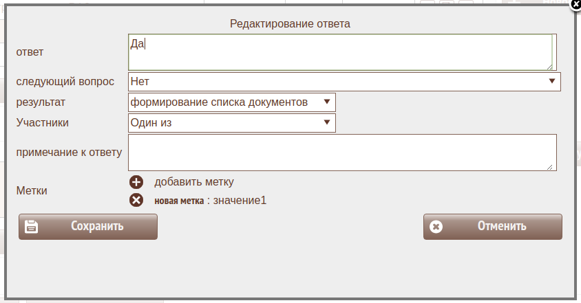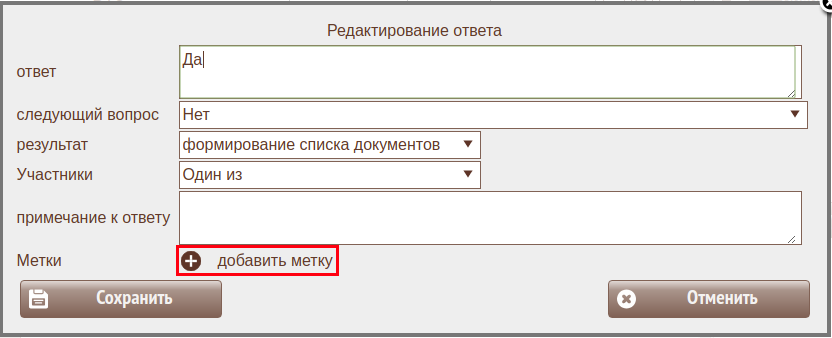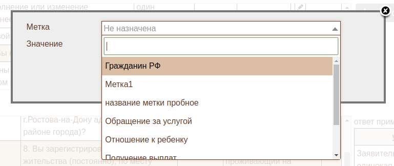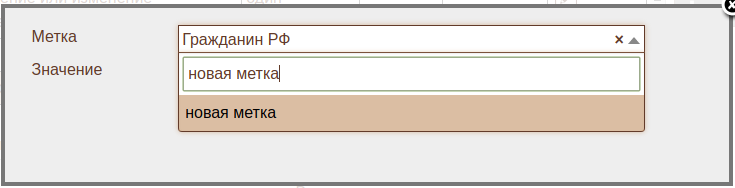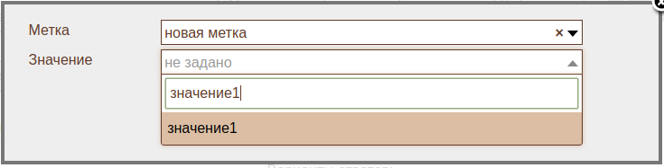 - далее выбирайте значение метки (отображаются все введенные для этой метки варианты ответов) или добавьте новое: