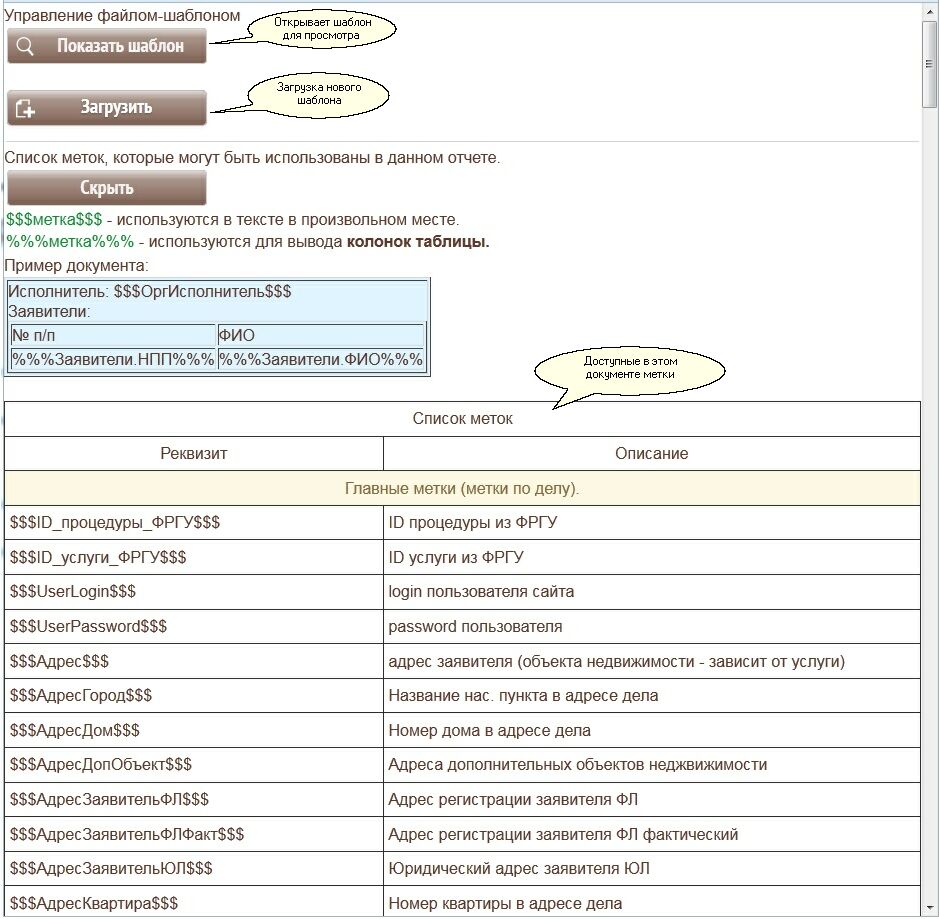 Важная особенность заключается в том, что метки по данной технологии НЕ выводят данные базового типового участника "ДОВЕРЕННОЕ ЛИЦО" - учитывайте это при проектировании версии услуги и бланков заявлений.