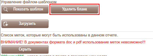 Для просмотра/редактирования шаблонов можно нажать правой кнопкой мыши на кнопке печати документа в программе или зайти в раздел Настройки->Управление бланками печати документов. После этого во всплывающем окне можно настроить шаблон и увидеть список доступных меток в этом документе.