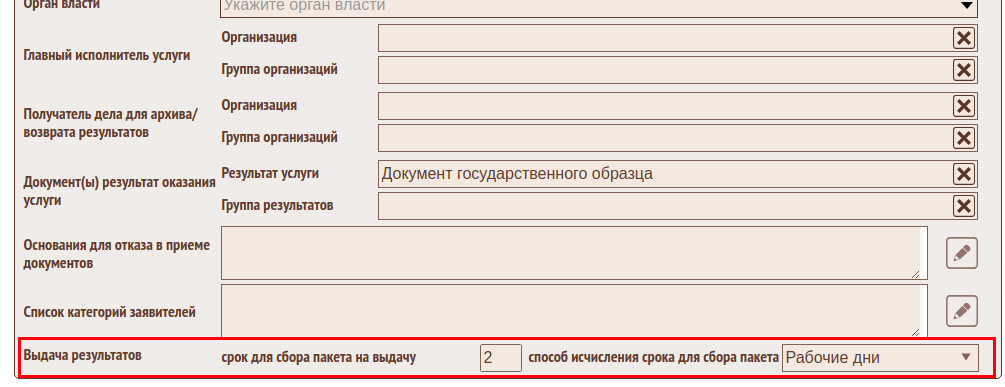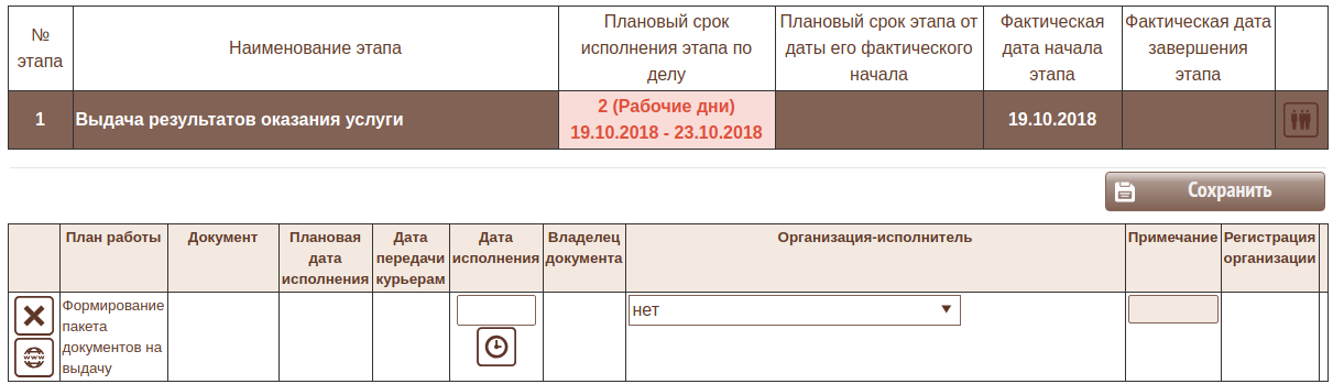 Срок исполнения этапа определяется настройкой в паспорте услуги