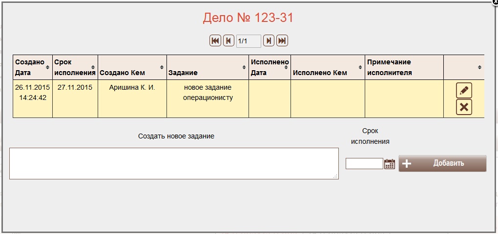 Данная форма предоставляет возможность для работников КАС давать задания операционистам на дополнительную работу с делом. При этом дело остается а КАС, но операционист получает доступ к документам в деле.
