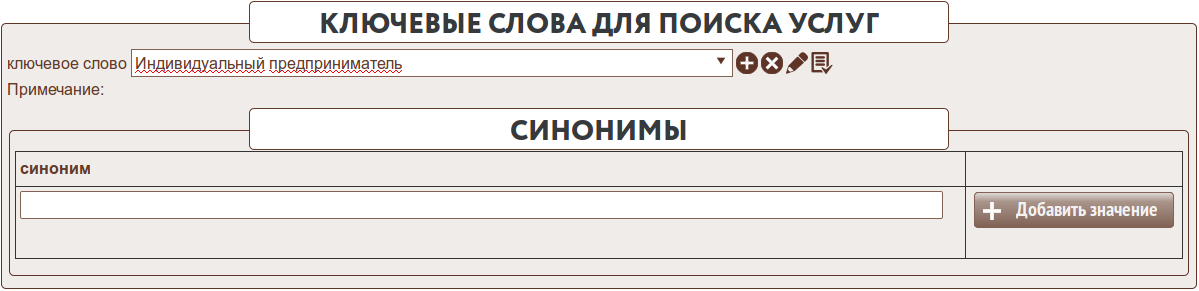 Ключевые слова предназначены для поиска услуг по набору описывающих тэгов (ключевых слов).