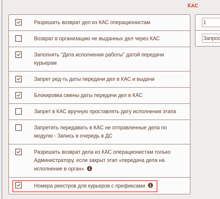 - в процессе работы специалист КАС формирует задания в курьерскую службу на передачу документов в организации.