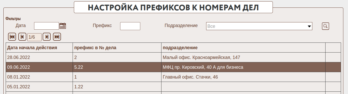 Подразделение для формирования префикса берется по подразделению дел, входящих в реестр. Если в реестр входят дела нескольких подразделений, то берется префикс, определенный для всех подразделений.