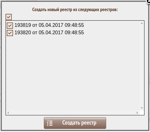 Из нескольких реестров для одной организации-исполнителя может быть сформирован сводный реестр.