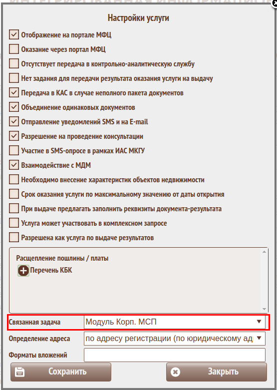 Указать в справочнике услуг связь с задачей каждой услуги корпорации