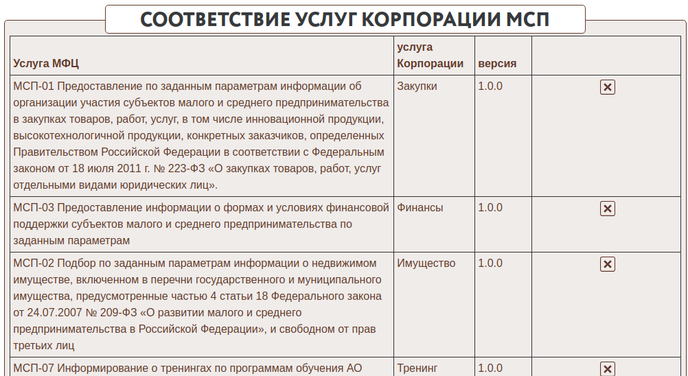 ("Закупки") выведена из состава услуг корпорации МСП.