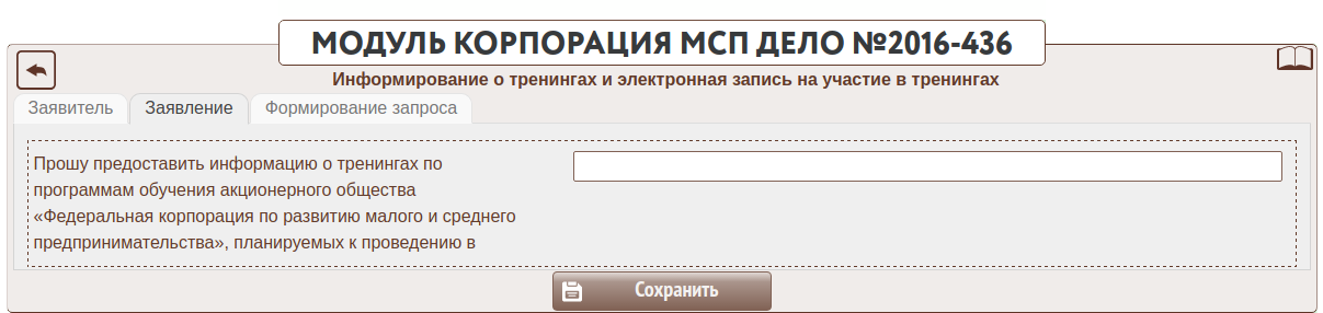 для услуги Информирование о тренингах и электронная запись на участие в тренингах