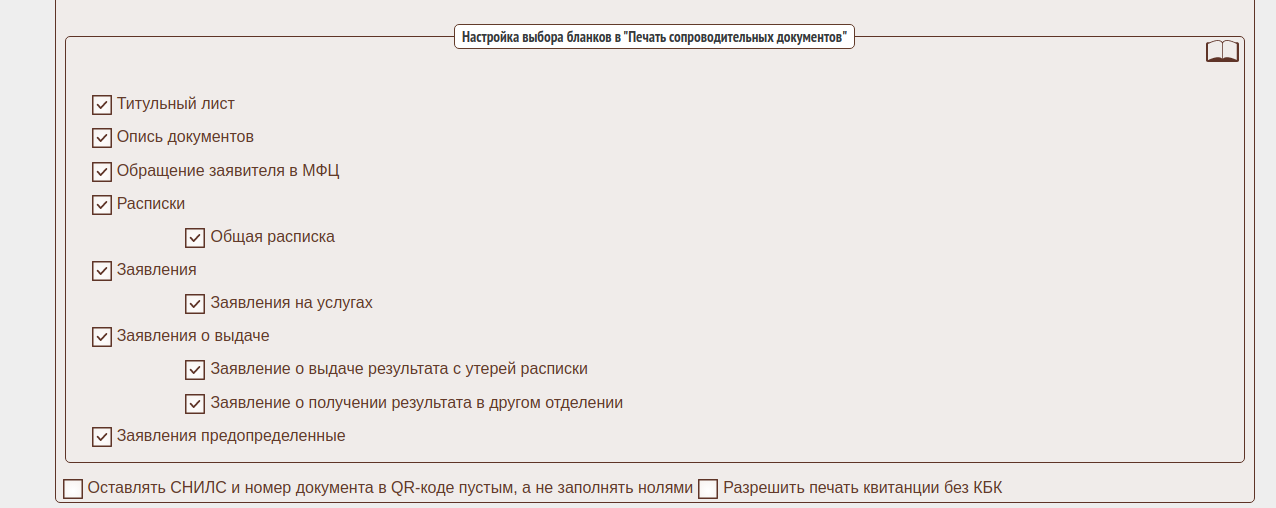 Снятие отметки с документа/раздела приведет к исключению его из выбора при формировании.