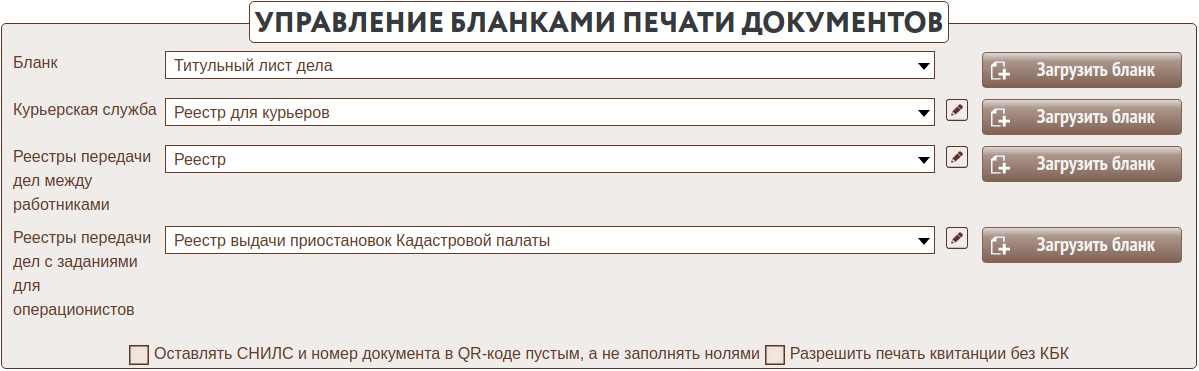 Для вызова формы загрузки бланков необходимо нажать на кнопку
