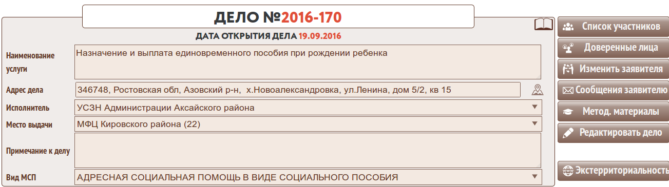 При создании операционистом нового дела в соответствии со справочником отношения МСП к услуге для дела будет зафиксирована МСП. Она может быть изменена операционистом