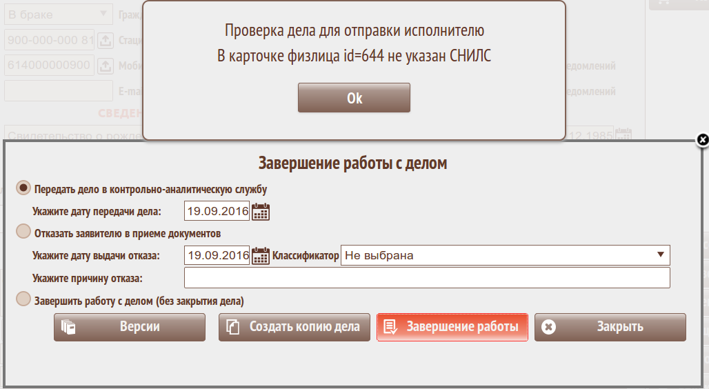внесено изменение: при отсутствии СНИЛС у участников дела выводится предупреждение (и передача может быть продолжена)