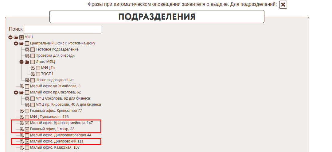 Эти настройки будут применяться ТОЛЬКО для выбранных подразделений: