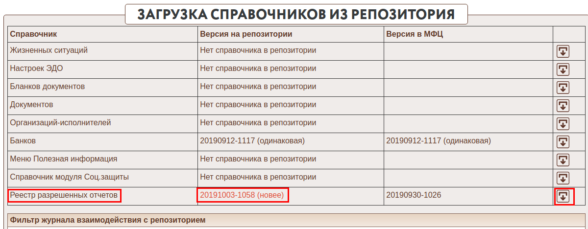 При её выборе осуществляется переход в форме "Разрешение отчетов через репозиторий"