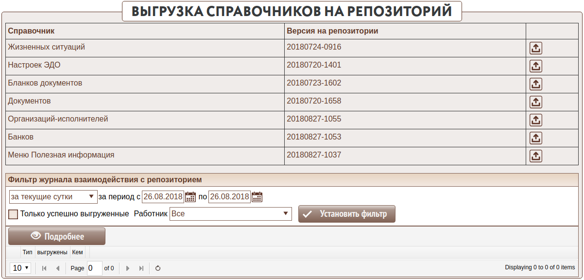 Весь вывод в репозитории фиксируется в журнале взаимодействия с репозиторием. Задав соответствующий фильтр, можно просмотреть историю вывода в репозиторий: что, когда и кем выгружено.