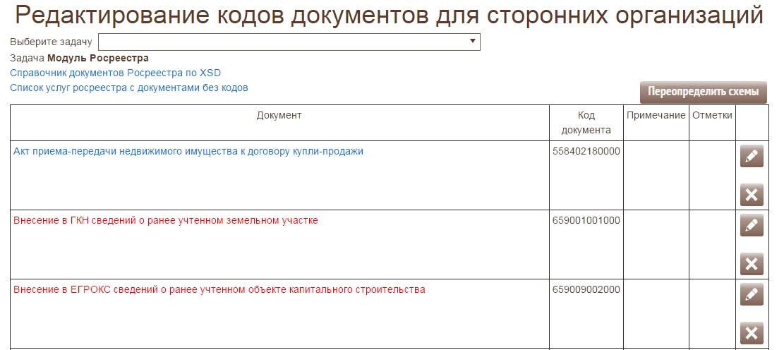 Для связи документов с кодами Росреестра необходимо зайти в форму "Сетевые модели"-"Справочник документов"-"Коды документов в сторонних организациях".