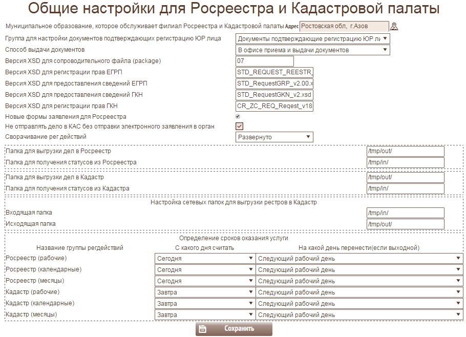 Необходимо настроить общие настройки для модуля Росреестра.