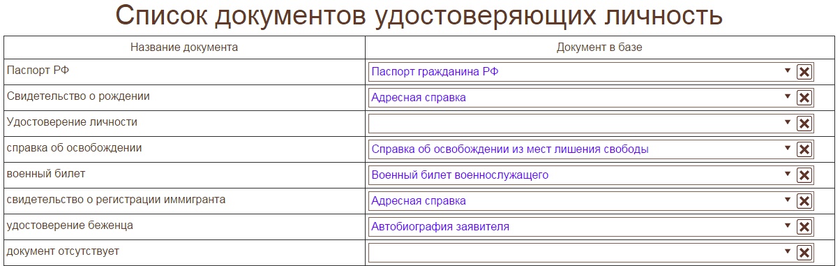 Необходимо настроить список документов удостоверяющих личность. Связать с существующими документами в деле.