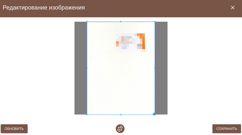 Для сканирования необходимо нажать кнопку "Сканировать". После этого скан образ появится в программе. Для обрезки или поворота изображения необходимо нажать на картинку. Будет вызвано окно для редактирования. Сканы можно перемещать путем перетаскивания.