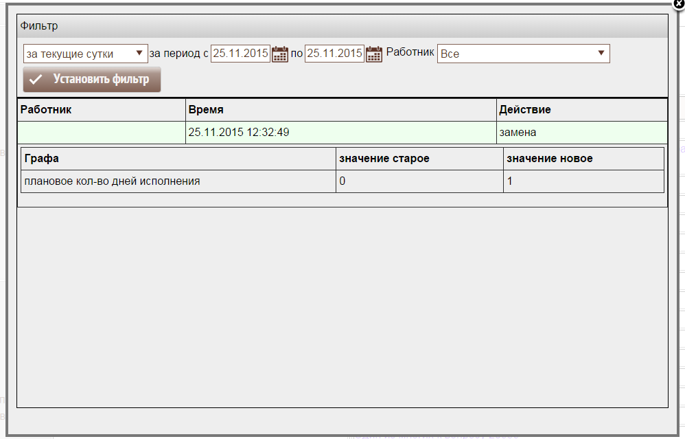 Внимание! для фиксации изменений должно быть включено формирование логов на таблице spdoc