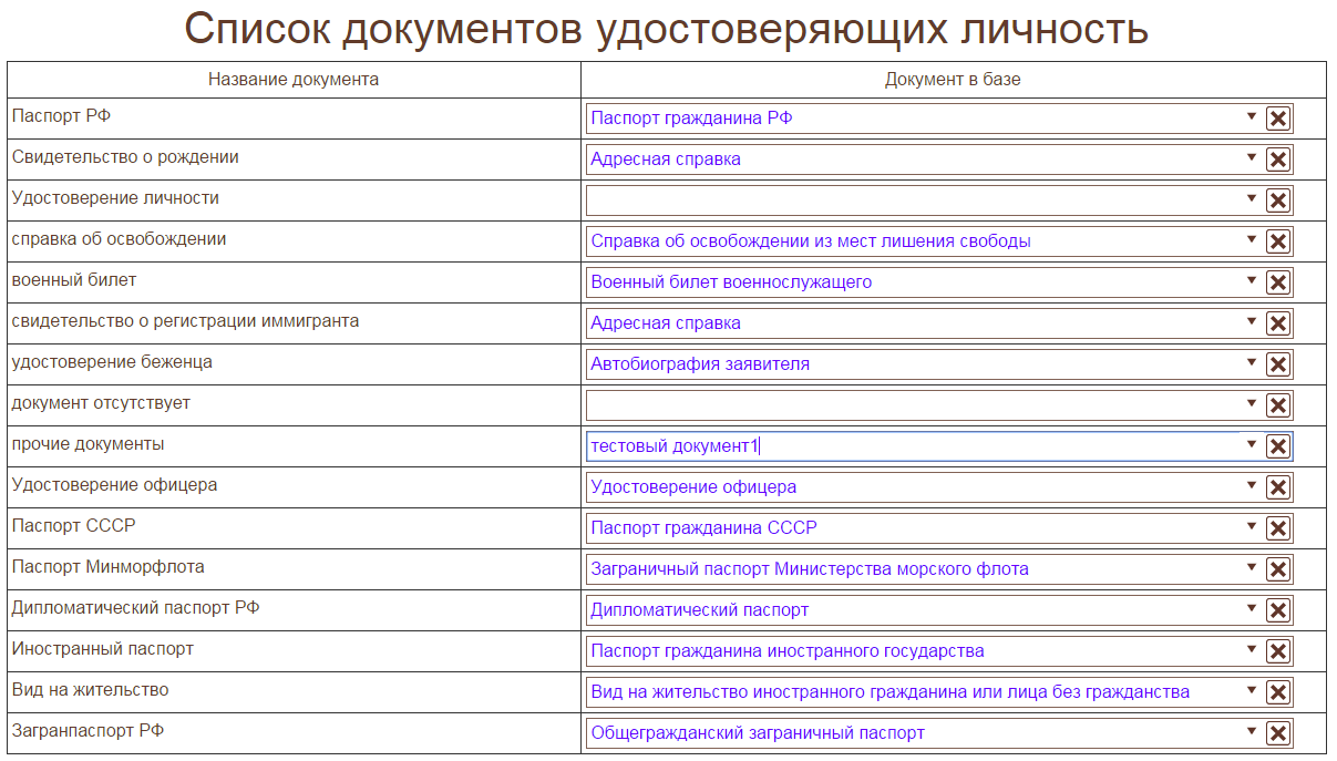 Связывание справочника документов для карточки заявителя "Документы удостоверяющие личность гражданина".
