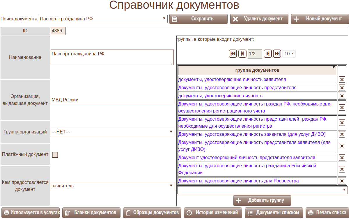 Далее, необходимо определить список групп документов, к которым относится описываемый документ. Один и тот же документ может относится к нескольким группам.