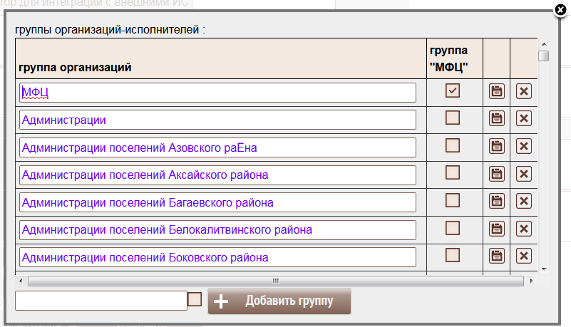 . Если эта группа будет содержать МФЦ обязательно отметьте это птичкой. После корректировки наименования группы сохраните изменения