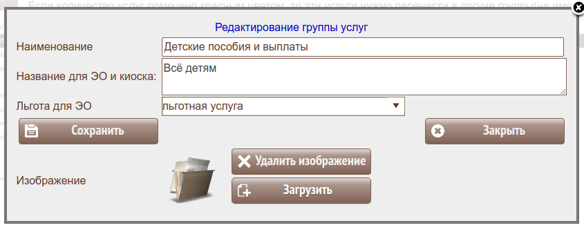 - изменить наименование группы для системы Электронной очереди (ЭО) и Инфокиоска;