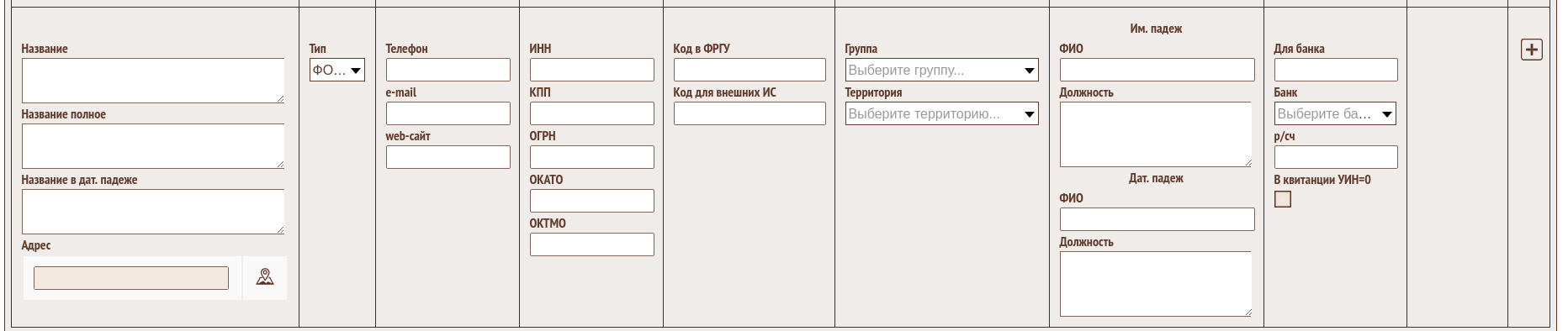 Строка фильтров предназначена для поиска в справочнике организаций по критериям: