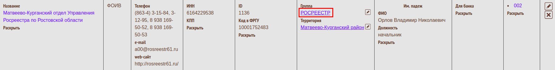 В данной форме можно перейти к редактированию организации, входящей в группу, щелчком по наименованию.
