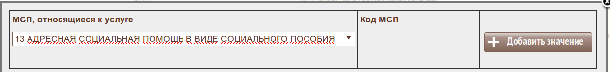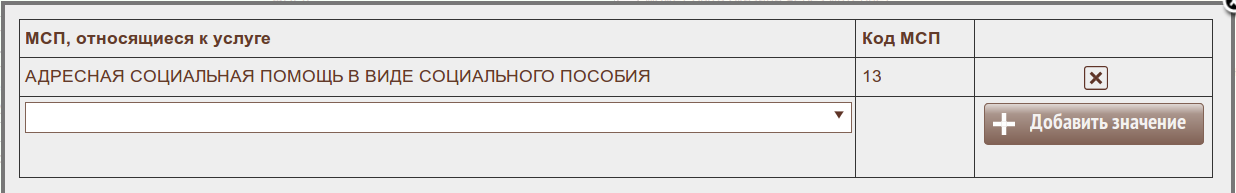 Справочник отношения МСП к услуге необходим для указания соответствия услуг, принимаемых в МФЦ мерам соцподдержки Минтруда РО.