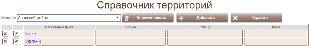 Территория может быть описана от региона до конкретного дома. Например , это может быть район города или четная сторона улицы Мира с 8 по 28 дом и дом 5 по ул. Цветочной. Сначала выбирается адрес